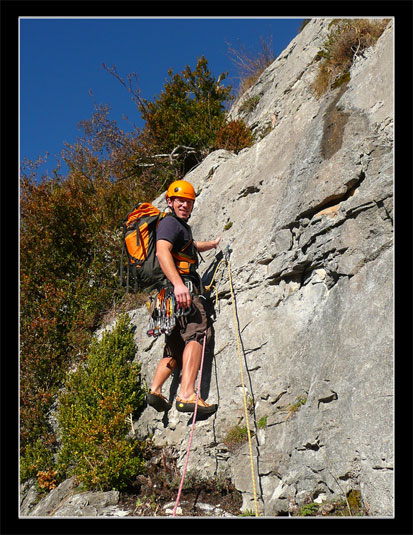 L4 : 5c, 20m – prendre le petit sentier sur la gauche puis tout droit sous un petit toit athlétique, superbe !